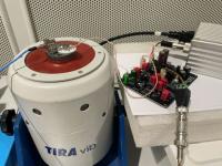 Dann wurden beide Sensoren gemeinsam auf einen elektrodynamischen Shaker von Tira (TV51110) befestigt (mit speziellem Wachs) und gemessen: