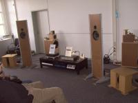 HMW, hifi musik world in stuttgart, ein paar bilder - ton-feile - 07.11.2010 Hallo Zusammen, es war mal wieder sehr schön auf der HMW. Die Lautsprecher im DIY-Raum spielten ohne Ausnahme auf hohem Niveau und nach der tatkräftigen Hilfe von Herrn Prof. Dr. Brüggeman am Samstagabend hat auch die Siegerin des diesjährigen Contests Zoé (mit den naturgegebenen Einschränkungen der Accurate-SW, wie den engen Sweetspot im Mittelhochton) klanglich voll überzeugt. Im Tief- und Grundtonbereich war das schiere Hexerei und funktionierte auch weit über den gemessenen Hörplatz hinaus. Ganz besonders gefreut habe ich mich aber über die Melody von Alufolie. Dieser Lautsprecher wurde nur mit Simulationssoftware völlig ohne akustische Messtechnik nach Gehör entwickelt und ist zudem noch ein Erstlingswerk. Sie beweist eindrucksvoll, dass Eigenentwicklungen "zur Not" auch ohne Messtechnik möglich sind. In den 70gern und 80gern haben schließlich viele so entwickelt und die hatten nicht einmal Simu-SW. ![]() Wichtig ist es natürlich, keine "Zicken-Chassis" zu verwenden, damit alles "gehörzugänglich" bleibt und da hat Alufolie eine ausgezeichnete Wahl getroffen. Die Melody spielt auf einem Niveau, das die (Mess-)Werkzeug-einschränkung bei ihrer Entstehung kaum zutage treten lässt und war damit mein persönliches Highlight bei dieser HMW. :thumbup: Ich freue mich schon auf die nächste Entwicklung, die ich von Alufolie hören darf und hoffe, dass er unserer kleinen aber feinen Community weiterhin erhalten bleibt. ![]() Gruß Rainer HMW, hifi musik world in stuttgart, ein paar bilder - timo - 08.11.2010 ACHTUNG ACHTUNG ACHTUNG, Dies Geschriebene wiederspiegelt MEIN Höreindruck. Zunächst noch ein Satz zu den Bildern, ich kann nicht verstehen, dass in jedem Raum so dunkel war, hat man die Boxen nicht sehen dürfen, überall nur diese sehr schlechte Hintergrundbeleuchtung, man hat wohl versucht die handwerklichen Mängel zu vertuschen. Trotz 50/1.4er Objektiv und ISO 400 wurden teilweise die Bilder sehr unscharf, mit Ultraweitwinkel wurde es nicht besser, also entschuldigt. Blitz ist nicht mein DING. Und ... ich hatte leider nur an die vier Stunden Zeit, deswegen hier nur eine gegrenzte Anzahl an Höreindrücken. Aber ... natürlich ist die HMW Pflicht, wenn sie mal hier im Ländle stattfindet. Zunächst zur Lokalität im Commundo, sehr gute Hörräume, leider etwas unübersichtlich angeordnet. Lediglich der kleinste Raum war akustisch eine Katastrophe. http://www.oaudio.de/ kaum angekommen sah ich gleich Stefan alias arnegger. und seine Lina ... http://www.lautsprechershop.de/hifi/lina.htm ... spielte ganz gut, aber ich war etwas enttäuscht, da wohl Klang und Ton versuchte die Weiche anzupassen und dies wohl in die Hose gegangen ist. Trennung nicht mehr bei 400 Hz sondern bei 900 Hz, irgendwie wurde die Weiche verschlimmbessert. In Bildern festgehalten habe ich noch einige interessante Boxen vom Raum. http://www.puredynamics.com/ Sehr schöne Boxen, und sicher akustisch nicht schlecht, nur ... wie kann man in der heutigen Zeit noch Schallplatten auflegen, der Klirr im Hochton war nicht auszuhalten. http://www.lautsprechershop.de/ als ich eintraf spielte die kleinste ... eine kleine Säule mit vielen kleinen Breitbändern und Hochtonkalotte, ich glaube es war ein Breitbänder von Wavecore, so ein 5 cm Ding, in Summe spielten die kleinen Teilchen nicht übel, die Stimmen machten allerdings ein paar Problemchen. Der Hochton war etwas unterdimensioniert. Als so kleine Säule spielten sie trotzdem sehr voll im Klang, überaus faszinierend, trotz sehr schlechtem Abhörplatz. die ... http://www.lautsprechershop.de/hifi/triga_neo_pro.htm .. war ebenfalls aufgebaut, leider war sie zu der Zeit nicht angeschlossen, sicher eine interessante Box, mal sehen ob ich mal bei Strassacker vorbeikomme, um sie im Nachgang zu hören. http://www.achenbach-akustik.de/ sehr interessante Boxen, mit ordentlich Membranfläche, leider konnte akustisch eine Box die ... http://www.achenbach-akustik.de/kits/aspekt_slxt.html ... nicht dies halten was die optisch verspricht, vielleicht lag es auch am Musikmaterial? Eine sehr dumpf agestimmte Box mit sehr wenig Brillianz. Eben nicht dies was ich normalerweise an einer Box schätze, ich verließ schlagartig den Raum. War kaum anzuhören, die anderen Boxen kannte ich teilweise noch aus Gelsenkirchen, sie sind eindeutig besser. http://www.definite-audio.de/ hat mir NICHT gefallen, bin gleich wieder weiter, ... http://www.hifi-selbstbau.de/ das zweite Highlight auf der Messe, eine kleine Box mit gleichem Coax wie bei der Lina, und Tangband Oval-Seitenbass, ich fand sie sehr angenehm abgestimmt, Stimmen kommen gut rüber, ohne jede Anstrengung, Bass war in diesem Raum etwas überfordert, oder war es der Verstärker der zu wenig Power brachte. http://www.feirtag-acoustic.de/ Akustisch waren die Hörner eine Katastrophe, optisch allerdings eine Wucht. Zeigt doch bitte mal den Jungs wie man akustisch gute Boxen baut. Das klassikstück kannte ich sehr gut, deswegen kann ich wohl behaupten, dass der Mittelhochton vollkommen verzerrt und dumpf wiedergegeben wurde, was mir allerdings Spass bereitete war der fühlbare Bass bei schon sehr kleinen Pegeln. http://www.diy-hifi-forum.eu/ die ZOE http://www.diy-hifi-forum.eu/forum/showthread.php?t=2164 Das dritte Highlight der Messe. Trotz sehr kleinem Raum konnte das Konzept seine Stärken ausspielen. Ich hatte aber auch den besten Platz im Raum. Mitte hinten. Trotz der theoretischen Konzeptschwäche bei der Auswahl und Platzierung der Chassis konnte mich dieses System überzeugen. Trotzdem werde ich die Software sicher NICHT einsetzen, ist mir einfach in Summe zu teuer. Bin zur Zeit mit der DCX sehr gut bedient. Aktiv ist die Zukunft, wenn man mal damit begonnen hat möchte man nicht mehr zurück. Die Zoe war der Grund warum ich nach Stuttgart fuhr, als ich dies Axel "Schefffield" sagte erwiederte er mir, er käme auch nur wegen der Zoe zur Mes