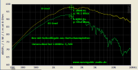 1-3,6 von Christophs Fragen aus Post#220 sind oben schon mit beantwortet und auch Viertens ergibt sich bei tiefer Trennung fast automatisch, bzw. wird bei einem 25cm WG mit Trennung deutlich unter 2kHz wohl eher von der Schallwand bestimmt als vom WG selbst (meine Vermutung).