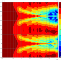 Das ist im Bereich zwischen ca 60° bis 100° schon ganz ok (gleichmäßig). Die Schwachstelle der relativ straken Abstrahlung zur Decke hin im Bereich von ca 1kHz-2,5kHz ist ebenfalls gut zu sehen.