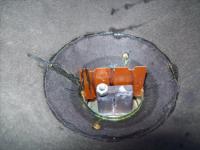 Nach dem Entfernen der Alu-Dustcap kam ein induktives Sensorsystem, bestehend aus einer Doppelspule auf dünnem Pertinax und zwei gegenüberstehenden Magneten, zutage.