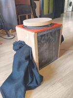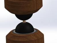 Die runde Holzplatte ist über ein Rundholz fest mit dem Magneten Verbunden, praktischerweise durch die Polkernbohrung geschraubt.