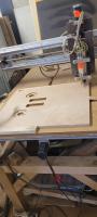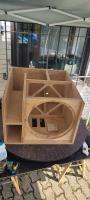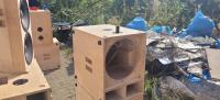 Hallo zusammen. Ich habe die letzten Monate genutzt um die komplette Anlage (so gut wie) fertig zu stellen. Meine Geburtstagsfeier letzte Woche war dafür eine super Motivation. Zufällig hat sich ein Freund von mir eine CNC Fräse selbst gebaut, was die Herstellung der Bässe ENORM beschleunigt hat. Das Holz habe ich bei einem online Sägewerk bestellt. Billigstes "Asiatisches" Multiplex, krumm und mit vielen Fehlern im Material. Aber alles andere ist im Moment leider unbezahlbar.
