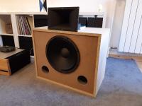 Hier in Kombination mit einem alten Pioneer Pw302A aus den späten 1960er Jahren, 16Ohm in Alnico. Der Treiber mit hoher Qts läuft im gezeigten Gehäuse mit ca. 120L in "klassischer" Fehlabstimmung mit Buckel um die 90Hz. 154mm Loch im Boden ohne BR Rohr. Ein 15pr400 wartet auf eine ordentlich adäquate Behausung als "Ersatz" für den Pioneer in der Resteverwertungskiste... Wie das hier aber spielt, an einer 18Watt Hiraga classA, v8nyl abgetastet vom legendären AT-22 an einer D3a Phono, bin ich sehr zu frieden. Ähnlich wie Christoph es gerade erfahren hat, dss Gefühl, etwas so gut klingendes gebaut 6nd in den eigenen Vier Wänden zu haben, ist klasse. Bin auf den 15pr400 gespannt... Werde berichten! Bis dahin, munter und dran bleiben. Gruß Alex