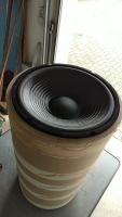 Geh zum Baustofffachhandel und besorge Dir da KG (Abwasserrohre) in 40cm. Sauber auf 100-120cm abscheiden. Dann aus MDF einen passenden Ring ausschneiden, den Du unten und oben einbaust. Oben einen 30iger Bass einsetzten und von vorne MT/HT einsetzten. Das habe ich damals ebenfalls in kleineren KG Rohren gemacht. Mit einer Lochsäge in große KG Rohr ein Loch gesägt, je das MT und HT Rohr rein und abgedichtet. Von Innen das Rohr mit altem Teppich ausgekleidet. BR Rohr nach belieben (bisschen experimentieren) ebenfalls mit Lochsäge eingesetzt und abgedichtet. Dreiweg Frequenzweiche aus dem Regal und fertig war der Partylautsprecher. Machte Spaß, war günstig und erzeugte so einen Bass wie man ihn im Auto als junger Kerl hatte (one note BUMM BUMM) .