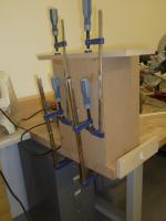 Schraubzwingen habe ich dafür nicht verwendet. Die über den flachen Winkel resultierende Kraft genügt eigentlich.
