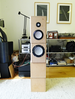 Ich weiß halt nicht, wo das von mir gehörte Problem herrührt. Es ist halt nur recht auffällig dass eine kompakte TMWW-Anordnung mit Trennung bei 350..400Hz praktisch nicht vorkommt, obwohl sehr naheliegend. Es kann sein "irgendetwas mit Bodenreflektion". Bei dir liegen sämtliche Treiber gut 15-20cm höher als in meinem bisherigen Aufbau. Auch höher als in vielen vergleichbaren Konstruktionen. Dann scheinen die Lautsprecher bisher recht frei zu stehen. Falls die Rückwand an dem Problem beteiligt ist, würde das einiges ändern. Wird das Teil auch final so frei stehen können?