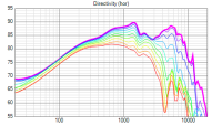 Hochtöner. grün = 0°, schwarz=30°, beides mit Weiche