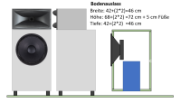 Wenn ich den Querschnitt des Spaltes am Boden entsprechend des Umfangs der BR-Öffnung an dessen Mündung anpassen will, dann sind das ca. 5 cm, die die Box über dem Boden schweben muss. Das passt optisch auch. Und wenn ich dann den Umfang der Box (46x46cm) mit diesen 5 cm Höhe mal nehme, dann entspricht das 920 cm^2 als Mündungsfläche (bei für die Simulation geschätzten 26 cm mittlerer Lauflänge), was wiederum perfekt zur Membranfläche passt.