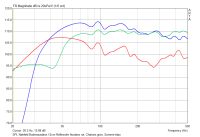 Bis auf den Pegelgewinn von leider nur ca. 5 dB (ich hätte nach der Theorie 6 dB erwartet) und leicht anderen Frequenzgängen oberhalb von 100 Hz, die ich auf die beengten Platzverhältnisse in meinem Bastelzimmer zurückführe, kann ich keinen wirklichen Unterschied erkennen. Dass die Strahlungsanpassung der "Hornvariante" mit 840 cm^2 Fläche besser als beim Reflexrohr mit 314 cm^2 und bei Bodenaufstellung besser als bei gedrehter Variante ist, möchte ich nicht in Abrede stellen. Das sollte aber über die Messung und Flächenskalierung berücksichtigt sein.