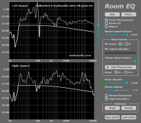 Meine Vorgehensweise war, dass ich den Alpair 10.2 LS wechselweise mit der DXT Mon 182 "Beta" vergleiche. Dazu habe ich einen LS links den anderen rechts stehen und habe beide im Pegel angeglichen und dann mittels Mathaudio Room EQ auf den Hörplatz entzerrt (linker Kanal - oben im Bild -- DXT Mon 182 Beta, rechter Kanal Alpair 10.2):
