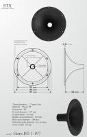 Auf deinem Bild kann ich nicht richtig erkennen wie sich die Winkel vom Chassis Konus zum Winkel des Kugelwellenhorn (beim Übergang) verhalten. Hast du eine Skizze zum Schnittbild? Bzw. der Winkel des Kugelwellenhorn ist auf jeden Fall größer oder gleich dem Winkel des FR5 Konus?