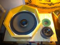 Die großen 7-Eck Passivmembranaufnahmen muss ich eh noch mal neu schneiden, da der Kreisausschnitt etwas zu klein geworden ist. Vielleicht kann ich Die auch nachschneiden, wenn ich den Mittelpunkt wieder finde.