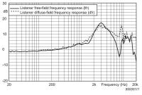 Also wählt man das nächste Extrem und wiederholt den Versuch in der Echokammer mit einem idealen diffuse field. Dadurch dass der Schall nun nicht mehr nur direkt von vorne kommt, sondern alle Richtungen gleich wahrscheinlich sind, verändert die HRTF den FG der am Trommelfell ankommt. Ein Kopfhörer der diese Kurve am Trommelfell reproduziert ist diffuse field entzerrt - klanglich war dies besser, aber klang bei hohem Schalldruck aggressiv.