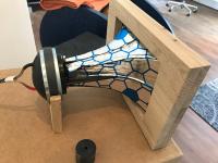 Das Gehäuse für das Horn ist aus einzelnen Eichenplatten mit 20mm Dicke aufeinander geleimt und dann mit der Flex halbwegs (freihand) in Form gebracht.