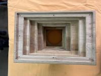 Die Zwischenräume vom Holzgehäuse zum Horn werden noch mit Sand gefüllt und dann verschlossen.