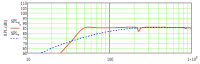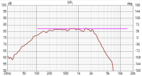 Sehe ich anders. Die Messung ist nicht oder nicht gut gefenstert, wodurch der Baffle Step nicht zu sehen ist. Etwas "schärfer" beschaltet, dürfte der bis 3 kHz oder höher einsetzbar sein. "Schärfer" bedeutet, dass man hier wohl unter den Kondensator des (wahrscheinlich nötigen) 12 dB Filters nochmal eine klitzekleine Spule hängen muss, um die Flanke zu bereinigen.