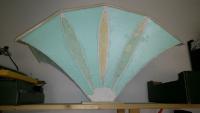 Beide müssen jetzt trocknen, dann geht es irgendwann weiter. Der Überstand wird weggeschnitten. Das war mit Heißkleber fixiert, damit es schneller die Form hält.