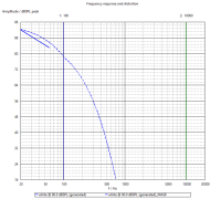 Das zweite Bild zeigt jedoch den Frequenzgang nach elektronischer Entzerrung auf flach bis runter nach 50 Hz. Wir haben nur noch ca. 3 dB mehr Pegel bei fB als bei Spannungsteuerung. Die Senkung des Pegels um ca. 12 dB führt aber nur zu 8 dB Senkung von K2.