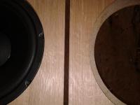 Anstatt das Chassis in der Schallwand zu versenken, habe ich mich dafür entschieden, im einen Zierring zu verpassen. Dazu habe ich einfach die Schallwandausschnitte vom Tieftongehäuse genommen und nochmal mit dem Kreisschneider bearbeitet. Hatte dabei schon etwas Schiss, dass es alles zerfetzt, hat ber geklappt. Der Ring sitzt jetzt relativ stramm auf dem Chassiskorb, muss nicht weiter befestigt werden