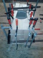 So, es geht weiter! Tieftönergehäuse ist auf einem guten Weg in der Fertigung, Sshallwände sind als Sandwich fertig, die restlichen Eichenbretter sind auch verliemt, zugeschnitten und geputzt, Versteifungsmatrix ist auch vorbereitet, usw... morgen gibts mehr Bilder vom zusammenbau (wenn ich es schaffe dabei noch welche zu machen). Die Treiberauuschnitte wurden in gewohnter Weise mit der Ständerbohrmaschine gemacht: http://www.youtube.com/watch?v=PNAZGhkVAa8