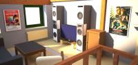 Vom Aussehen her sagt mir allerdings die jetzige Position der Anlage mehr zu und auch ein Bassabsorber scheint sich eleganter unterbringen zu lassen, wenngleich ich mir nicht sicher bin, wie wirkungsvoll er in diesem akustisch verkorksten Raum wohl sein würde.