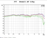 hier die Winkelmessungen bis 45°. Ich habe die Spule vor dem Tieftöner von 2,7mH auf 2,2mH geändert. Bringt im Mittelton ein gutes dB.