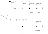 Im HT habe ich die Topologie etwas anders als Du, indem ich den Spannungsteiler nach dem Filter habe. Dein Ansatz geht theoretisch auch, aber die Impedanz rutscht deutlich nach unten.