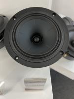 Das ist im Grunde der 5"/15cm Alu Tiefmitteltöner mit einer Gewebekalotte in der Mitte. Der flache Aufbau der Sicke soll den Hochtöner wenige stören, sie scheint aber genauso viel Hub wie die einfach gewellte Gummisicke zu machen – ich finde das optisch sehr schick, erinnert mich an die TAD Treiber.