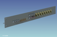 Hier mal auf die schnelle das Anschlußboard in eine 2 mm Rackblende gezeichnet.
