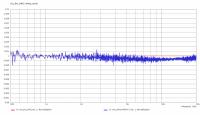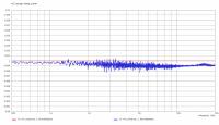 Einmal ohne Glättung, einmal mit 1/3oct., in rot ist der normierte Frequenzgang eines Kondensators zu sehen, in blau ist das Null-Summen-Signal der beiden Kondensator-Messungen zu sehen:
