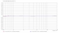Werden die beiden Frequenzgänge der Messungen aufeinander gelegt (ohne Glättung und mit 1/3oct.) erkennt man nur wenig Abweichung (0,001 Einheiten der y-Achse entsprechen 0.1dB):