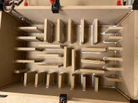 Ich hätte da auch noch eine Idee. Und zwar ein Gehäuse, bei dem 20mm x 20mm Viereckleisten parallel und unregelmäßig innen verleimt werden, also jeweils von Innenwand zu Innenwand.