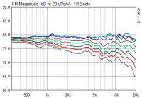 Die kleine Auffälligkeit bei ~400Hz hatte ich jetzt schon ein paar mal in den Messungen festgestellt. Passt zu keiner Gehäusedimension, Frequenz ist viel zu tief. Ich vermute eine Resonanz in der Zentrierspinne oder Membrantaumeln...