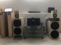 PC, Chinaschnittstelle USB auf Cinch und dann in XLR AES EBU und in der Behringer aufgetrennt auf die drei Stereoendstufen, NAD in Bass und Cinateilchen in Mittel- und Hochton.