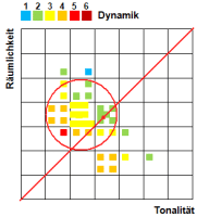 Umgekehrt, je weniger auf Tonalität und Räumlickeit wert gelegt wird, umso wichtiger wird Dynamik (die orangenen-roten Punkte).