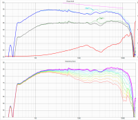 Anbei nochmals meine Messung die ich voe Matthias seinen Anstrengungen bei mir gemacht hatte, Mikrofon 1m Höhe, 1 Meter Entfernt von der Box, im Diagramm die unteren Kurven, die obere ist Nahfeld der Einzelchassis