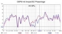 Habe jetzt mit den internen DSP der Amper502 die Frequenzweiche eingestellt. Die Störung beim Tiefton bekomme ich mit der voreingestellten Filterfrequenz weg. Im Hochtonbereich muss später das miniDSP retten und das Loch bei der Trennung bekomme ich vielleicht auch gefüllt. Hier kann ich jedenfalls die richtige Phase erkennen. Da jetzt Hochton und Tiefton am Amper502 korrekt nach Farbgebung der Pole an Plus und Minus angeschlossen sind. Habe ich 2 Messungen. [ATTACH=CONFIG]66506[/ATTACH] rot nicht invertiert blau HT, direkt am Lautsprecher invertiert Da ich weiß, dass der HT invertiert angeschlossen sein muss, ist der Anschluss am Amper502 falsch dargestellt! Würde ich mal so sehen...:rtfm: edit: mit miniDSP4x10HD gebügelt: [ATTACH=CONFIG]66507[/ATTACH]