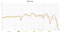 Zweite Grafik zeigt den SPL mit Alubutyl in beige, das ganze mit dem bisherigern Sperrkreis (blau) und mit dem zusaetzlichen Saugkreis (hell-Tuerkis) - der 5,5kHz-Peak hat am meisten genervt, besonders bei Sibilanten, deswegen "runter gedrueckt".