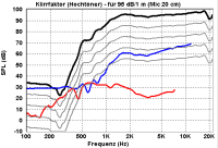 Hier zwei weitere Messungen des Hochtonhorns mit Weiche bei 95 dB/1 m mittleren Schalldruckpegels. Bei der ersten Messung stand das Mikrophon mit 20 cm Abstand vom Lautsprecher, bei der zweiten Messung 100 cm: