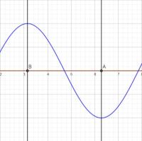 Mein Sohn war so nett, mir in GeoGebra was zu basteln, so dass ich das nicht händisch zeichnen musste (und man es sich auch im zeitlichen Verlauf ansehen kann). Allerdings liegt hier das Gehäusewä zwischen den zwei senkrechten Strichen, die die linke (durch den Punkt B) und rechte Wand (durch den Punkt A) des Gehäuses (in einer Dimension) dartstellen. Die Bereiche links von B und rechts von A dürft ihr für die Grundschwingung vergessen.