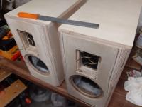 Er nimmt eine zu kleine Raspel und raspelt mal etwas an 2 Lautsprechergehäusen, so das die Bösen Kanten den Hochtöner weniger ärgern.
