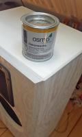 Schleifen und dann Osmo Dekor-Wachs drauf. Hier verwendet "schneeweiß" - die Dose obendrauf "grau" - ich werd da noch mal mit grau rübergehen, das ist allerdings meine persönliche Note.