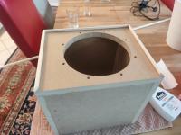 Die Gehäuse werde ich im nächsten Schritt innen versteifen, dann Löcher sägen, weiß lackieren, klar lackieren, alles einbauen, dämmen - und zuletzt kommt das Epoxidharz, wahrscheinlich mit blauen und purpurfarbenen Elementen auf dem weißen Korpus.