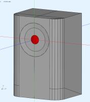 Für die Umsetzung müsste man mit CAD-Software (in was ich, außer etwas Sketchup, noch nicht eingearbeitet bin) ein Gehäuse entwerfen und extern meshen oder man bildet das Gehäuse in Näherung mit Segmenten direkt in ABEC nach (ähnlich wie die Rundung umgesetzt ist) - das könnte später theoretisch auch parametrisiert werden, hätte aber wenn das "Baffle" Element verwendet wird eine flache Schallwand im Bereich der Treiber.