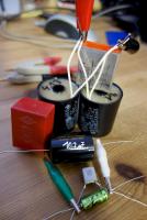 Dann würde ich bei maximal vorhandenem Verantwortungsgefühl den Leuten mit teuren Hochtönern als erstes raten, gleich vollaktiv zu bauen. Da hängt die Schwingspule direkt am Verstärkerausgang und man muss sich keine Gedanken mehr darüber machen, welcher Widerstand und welcher Kondensator im Signalweg denn wohl am meisten übrig lässt.