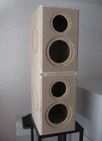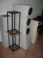 Ich habe da die Tage modifizierte Lidl-Blumenständer-Stahl-Dingsbumse zusammen geschraubt (für das MFB-Battle auf dem FFE / meine JAMO 90), 26 x 26 x 62,5 cm auf 22er MDF-Platte 32 x32 cm, sollte passen.