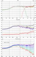 Das ist jetzt nicht mehr der Fall. Beim Hochtöner sieht man jetzt bei 4,5 bis 5kHz eine leichte Aufweitung und zwischen 10 und 12kHz eine ziemlich große Aufweitung. Bei 0°C Außentemperatur würde ich dem jetzt erstmal noch nicht zu viel Bedeutung beimessen. Der TMT sieht dafür jetzt deutlich besser aus. Allerdings ist der Frequenzgang für mich unter Winkeln noch nicht ganz plausibel, da die Bündelung noch immer verdammt früh einsetzt (für einen 4 Zöller). Der Drehpunkt lag dieses Mal aber definiiv auf der Schallwand.