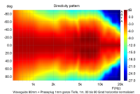 Bei den Höhen würde ich fast dafür plädieren, den natürlichen Anstieg des AMT um 10 kHz herum dazu zu nutzen, diese in den Raum zu streuen, anstatt das durch Einengung der Abstrahlfläche umzusetzen. Ich denke, da war ich im Post #68 schon auf einem guten Weg. Ich habe die Directivity-Plots dort nochmal in der Auflösung erstellt, wie sie dein Simuprogramm ausspukt. Das ist vorallem bei tieferen Frequenzen noch zu breit von der Abstrahung her, was aber bei nur 40mm Tiefe des WG nicht verwunderlich ist und relativ leicht zu ändern sein sollte.