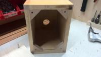 Am liebsten würde ich, wegen des Hochtons, die Kenmore V2 verbauen. Heute habe ich bereits in den Ecken kleine Dreiecke eingeleimt, damit die Einschlagmuttern für die Front eingesetzt werden können.
